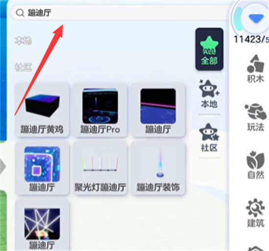 2、在家园中找到制作模式,搜索蹦迪厅,选择该模组。