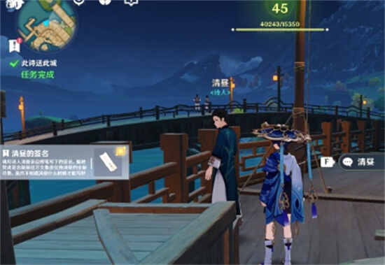 3、在第一层的桥上找到NPC清昼,与其对话。