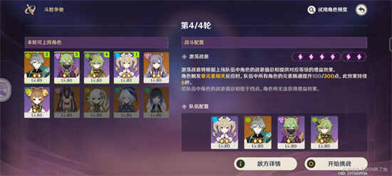 第三波——纳西妲(元素爆发+元素战技),芙宁娜(元素爆发+元素战技),久岐忍(元素战技+元素爆发),切纳西妲输出