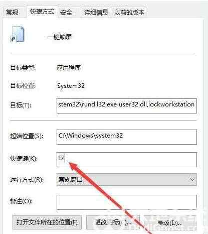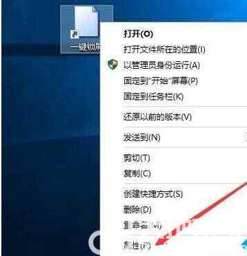 4、此时右击桌面的一键锁屏快捷方式,选择“属性”。