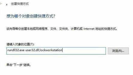 2、在弹出的窗口文本框中输入命令:rundll32.exe user32.dll,lockworkstation。