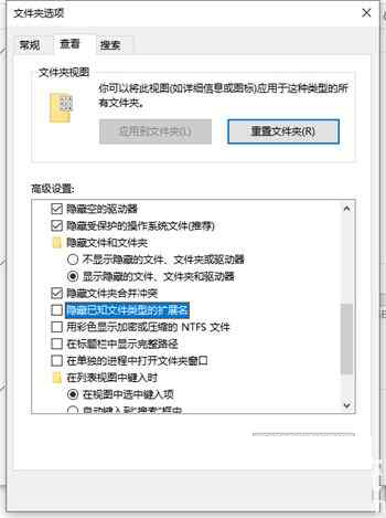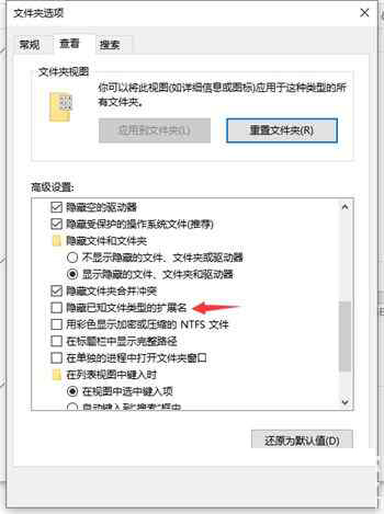 4、将“隐藏已知文件类型的扩展名”前面的勾选去掉。