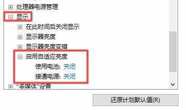 5、在显示选项下,将“启用自适应亮度”选项“关闭”就可以了