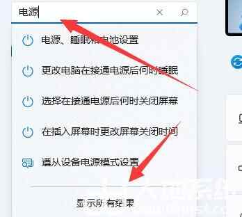 2、在左上角搜索“电源”,选择“显示所有结果”