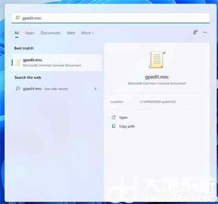 5、单击开始按钮并输入 Gpedit.msc,您应该会看到该工具出现在结果中单击它(或使用 Win + R 运行命令,然后是 Gpedit.msc),您将能够访问组策略编辑器。