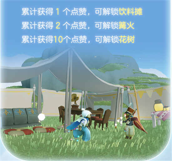 ★当共享空间的作品获得不重复玩家的点赞并累积到一定数量时, 可解锁部分放置物品,累积点赞数不会因修改/删除共享空间而重置,请旅人们放心搭建~