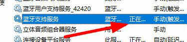 3、接着去找到如图所示的“蓝牙支持服务”,如果未启动需要手动打开。