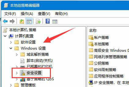 3、展开“windows设置”下的“安全设置“。