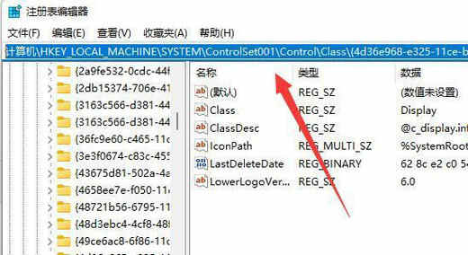 4、进入“计算机HKEY_LOCAL_MACHINESYSTEMControlSet001ControlClass{4d36e968-e325-11ce-bfc1-08002be10318}”