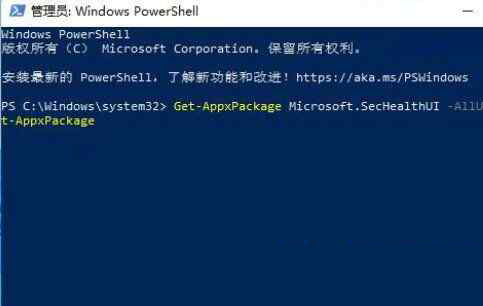 4、在执行【Get-AppxPackage Microsoft.SecHealthUI -AllUsers | Reset-AppxPackage】回车,就可以打开Windows11安全中心