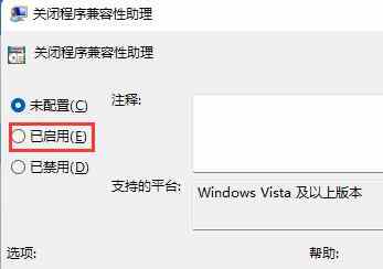 3、点击“应用程序兼容性”,双击打开右侧的“关闭程序兼容性助理”