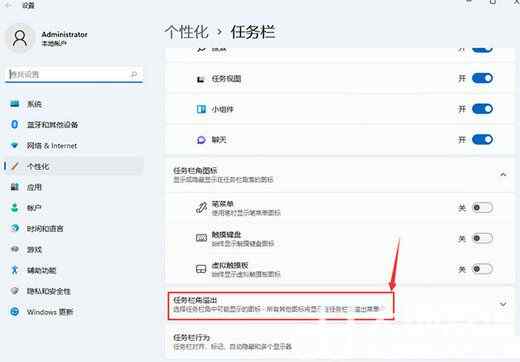 在win11系统中许多功能都会以小图标的形式显示在任务栏上,但是有的用户发现部分功能图标被折叠了,那么怎么设置才能让它们全部显示呢?方法非常简单,你先打开任务栏设置面板,之后进入任务栏角溢出界面,将想要显示的功能图标右侧的开关全部打开,这样就会在任务栏上直接显示出来了。