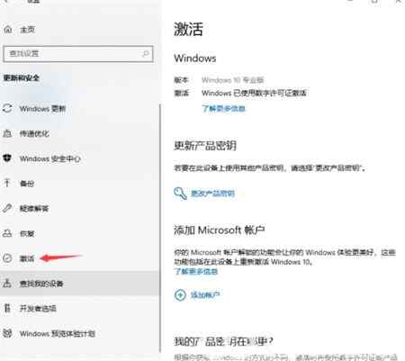 3.在左侧菜单中选择激活选项,打开Windows激活设置选项。