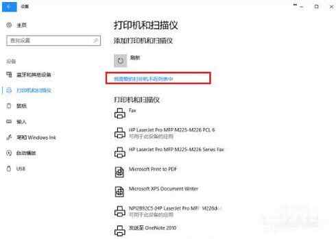 5、若没有搜索到打印机的存在,点击“我需要的打印机不在列表中”