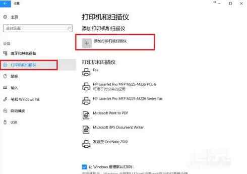 2、点击“设备”选项,找到“打印机和扫描仪”,点击“添加打印机或扫描仪”
