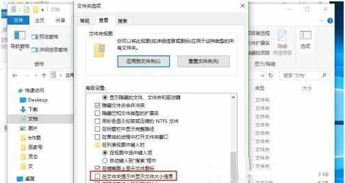 4、找到并勾选“文件夹提示中显示文件大小信息”,点击“确定”。