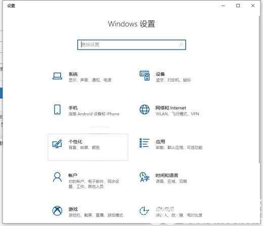 2、设置中找到个性化打开。