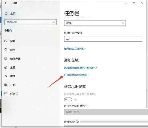 4、找到一个打开或者关闭系统图标打开。