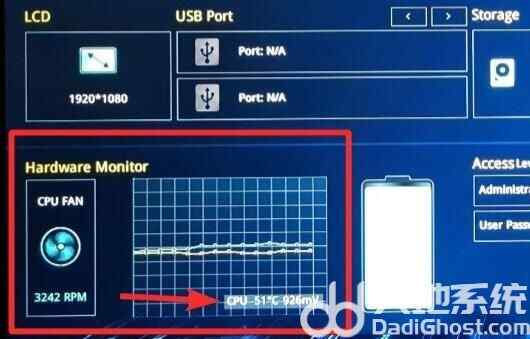 5、最后点击“重启”,就可以在图示位置看到cpu温度了。