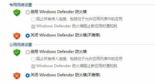 3、最后将防火墙全都关闭并保存就能下载文件了。