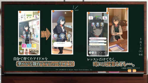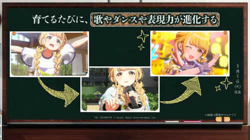 不同于以往更偏向团队的养成形式,本作的核心是专注于一名偶像的培养。除了其偶像能力训练之外,也需要上课学习。依据不同的培育程度,课程最后的歌唱与舞蹈表现也会有所变化。