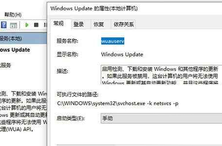 2、找到并打开【Windows Update】服务,然后单击“停止”,再将启动类型改为“手动”
