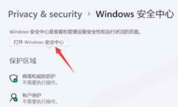 4、接着在windows安全中心中选择“打开windows安全中心”