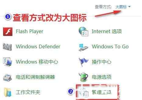 1、打开控制面板,进入“管理工具”,然后点击进入“服务”