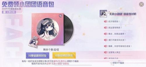 2、一名好友成功领取分享,你就可以在邮件礼物中心领取一个福袋,福袋开12次必得无敌小团团的语音包;