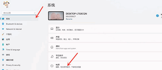2、选择左边栏目的系统,接着点击电源。