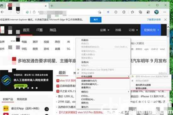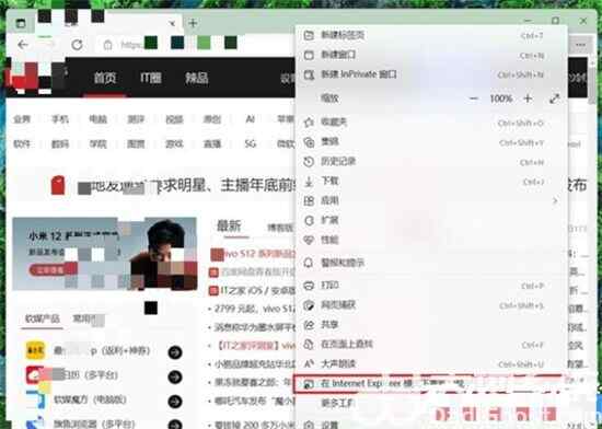 3、之后我们随便加载任意网页,点击 Edge 右上角菜单栏,选择在Internet Explorer模式下重新加载。