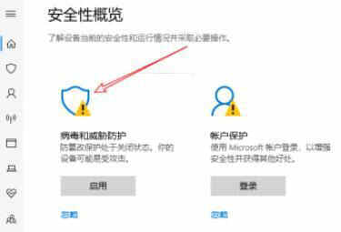2、在弹出的界面中点击【病毒和威胁防护】。
