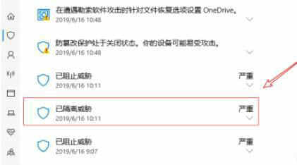 4、之后就能够在弹出的页面中看到保护历史记录,点击【已隔离威胁按钮】。