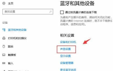 5、然后将AirPods作为您输出设备。在“蓝牙和其他设备”设置窗口的相关设置中,选择声音设置,在声音对话框中将蓝牙设备作为输出设备。