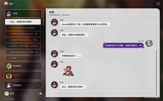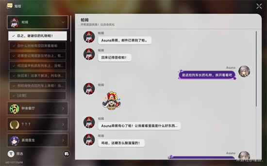 大家送给了谁呢,我是选择送给了帕姆,毕竟帕姆不能离开列车独守空车,就当作给空巢帕姆的一点关爱帕选择帕姆后会触发和帕姆的对话,这就是星穹列车一家人吧,看的人心里暖暖的