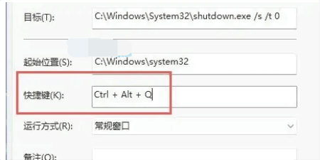 5.然后在文件属性窗口中找到“快捷键”一栏,点击右边对话框,再按下想要设置的快捷键并保存。设置完成后,我们只要按下刚刚设置的快捷键就可以快速休眠了。