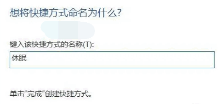 3.下一步我们给这个快捷方式命名休眠快捷方式 ,再点击“完成”选项。