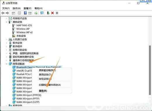 通过蓝牙连接设备去使用是大家经常要用到的一个操作,但是有的windows11用户反映在连接时找不到蓝牙设备,怎么办呢?你先打开设备管理器,然后展开网络适配器选项,之后打开Bluetooth Device的属性窗口,接着点击更新驱动程序按钮,然后按照步骤完成蓝牙驱动程序的更新应该就能解决问题了。