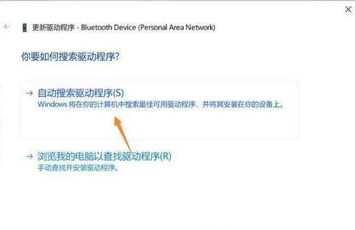4、更新驱动程序 - Bluetooth Device (Personal Area Network) 窗口,可以选择自动搜索最新的驱动程序,也可以选择浏览我的电脑以查找驱动程序;