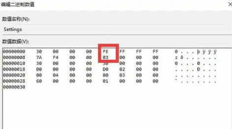 4、点击FE字母下面的数字,按照01任务栏置顶,02任务栏在右,03任务栏在下,04任务栏在左进行修改