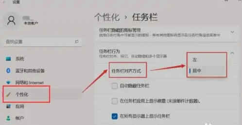 3、点击左侧个性化,右侧任务栏,调整任务位置