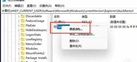 2、点击确定运行窗口,在注册表内找到:\HKEY_CURRENT_USER\Software\Microsoft\Windows\CurrentVersion\Explorer\StuckRects3。