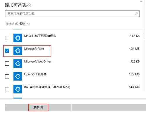 在Microsoft Paint前面添加复选标记,点击“安装”即可。