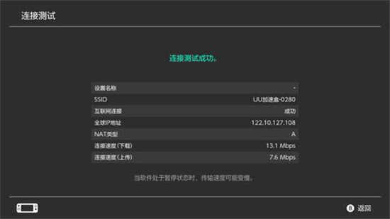 9、全部都完成设置之后,返回到网络测试,如果出现以下的提示那就表示连接成功,可以体验快速游戏!