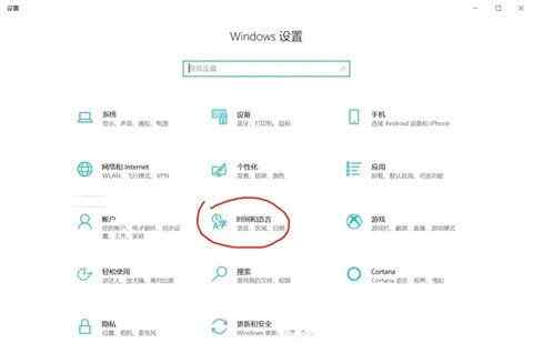 2、在“Windows设置”中,点击“时间和语言”选项。