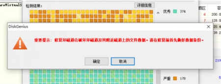 5、全面检测后选择“尝试修复”,这时会出现两个警告,这也是此种修复方式与Windows自带修复最大的不同。它并不会自动抢救和修复数据,甚至还可能影响坏道附近的数据,而Windows则会将“抢救”出的文件存为CHK文件,可通过一些软件进行恢复。