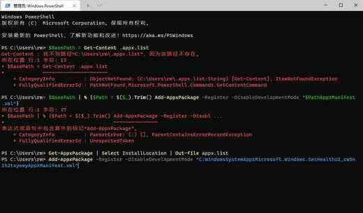 第一句:$ Path = Get-Content .appx.list (报错不要管)