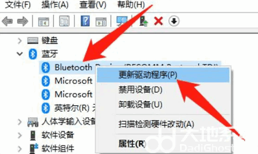 4、点击Bluetooth...,点击更新驱动程序(P)。