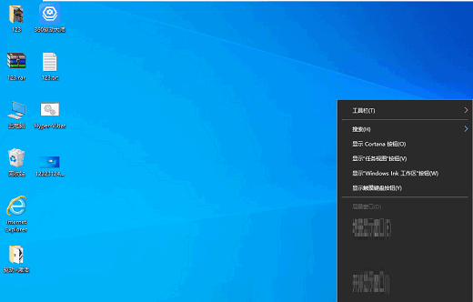 2、或者我们在任务栏空白处右键,看到显示桌面,鼠标点击即可。