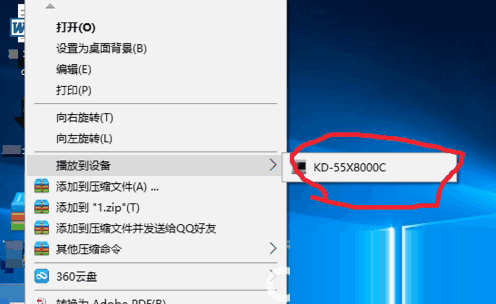 2、如不能连接,将电视关机重启。如能连接,回到你想要看的文件。右击,播放到设备,点击设备。
